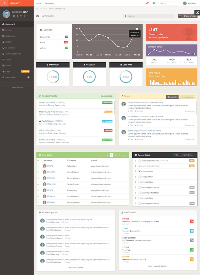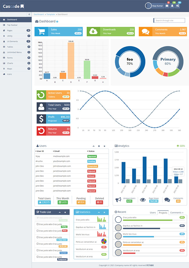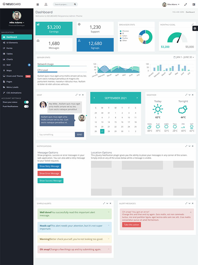 8种皮肤的HTML5网站管理后台Bootstrap模板