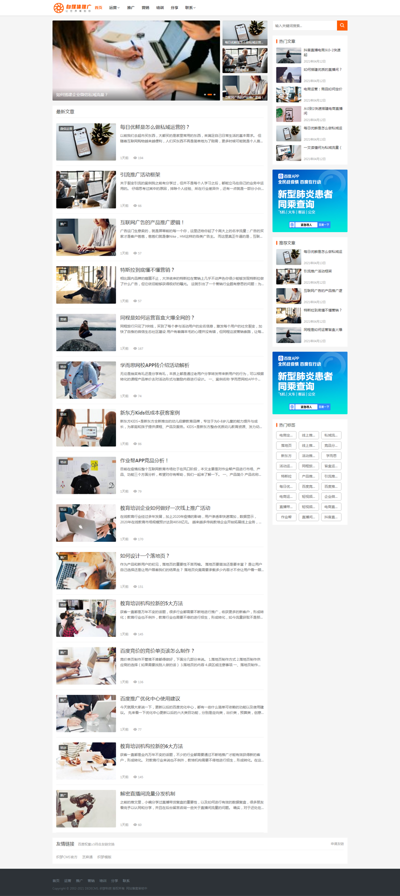 内核开发的模板,该模板属于HTML5响应式、自媒体运营、自媒体教程、自媒体培训类企业使用,一款适用性很强的模板,基本可以适合各行业的企业网站!