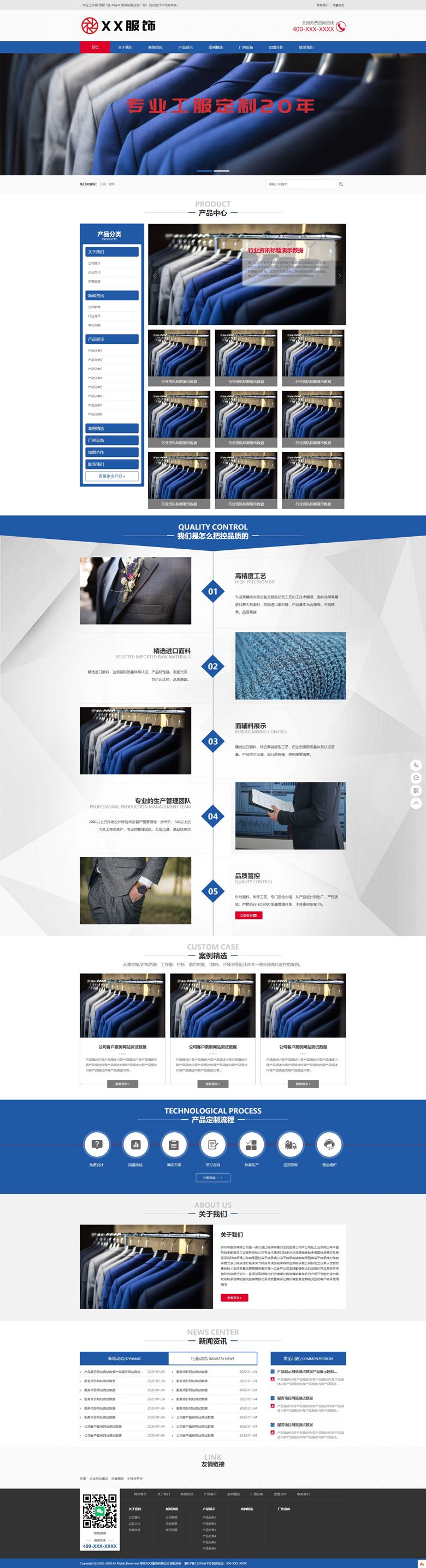 蓝色西服工作服酒店制服等服饰企业厂家网站模版源码