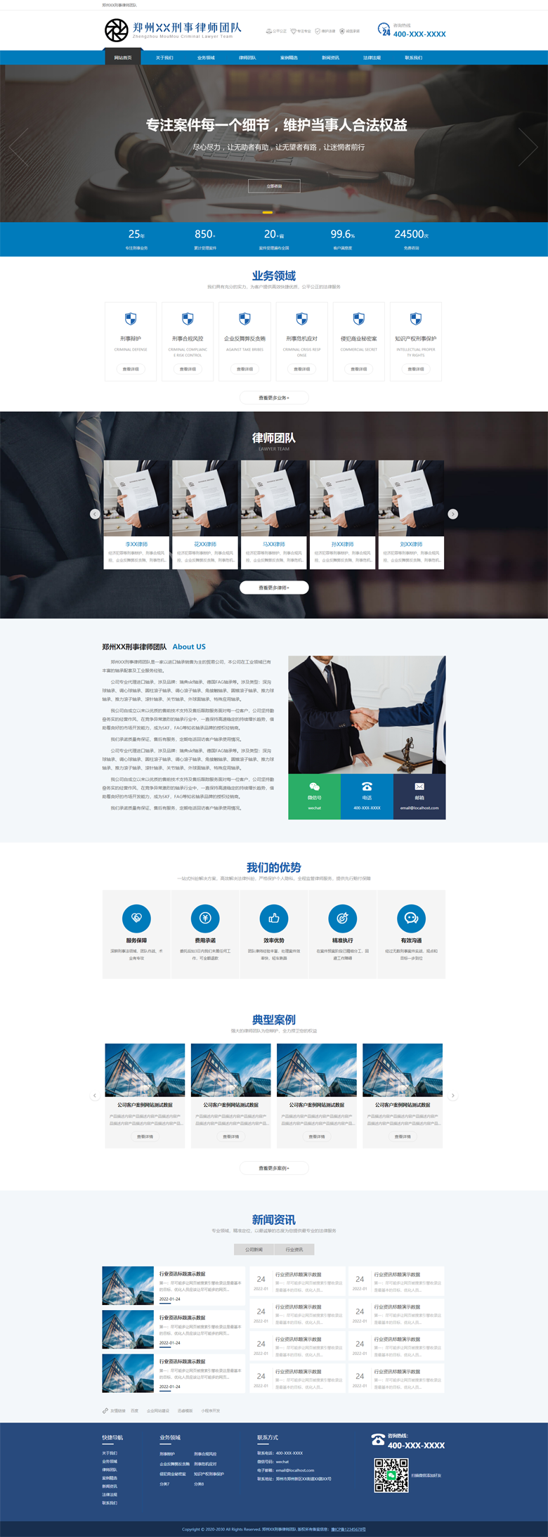 本主题模版为自适应布局设置,自动适应移动设备访问。网站包括律所介绍,业务介绍,团队、案例、联系方式等。