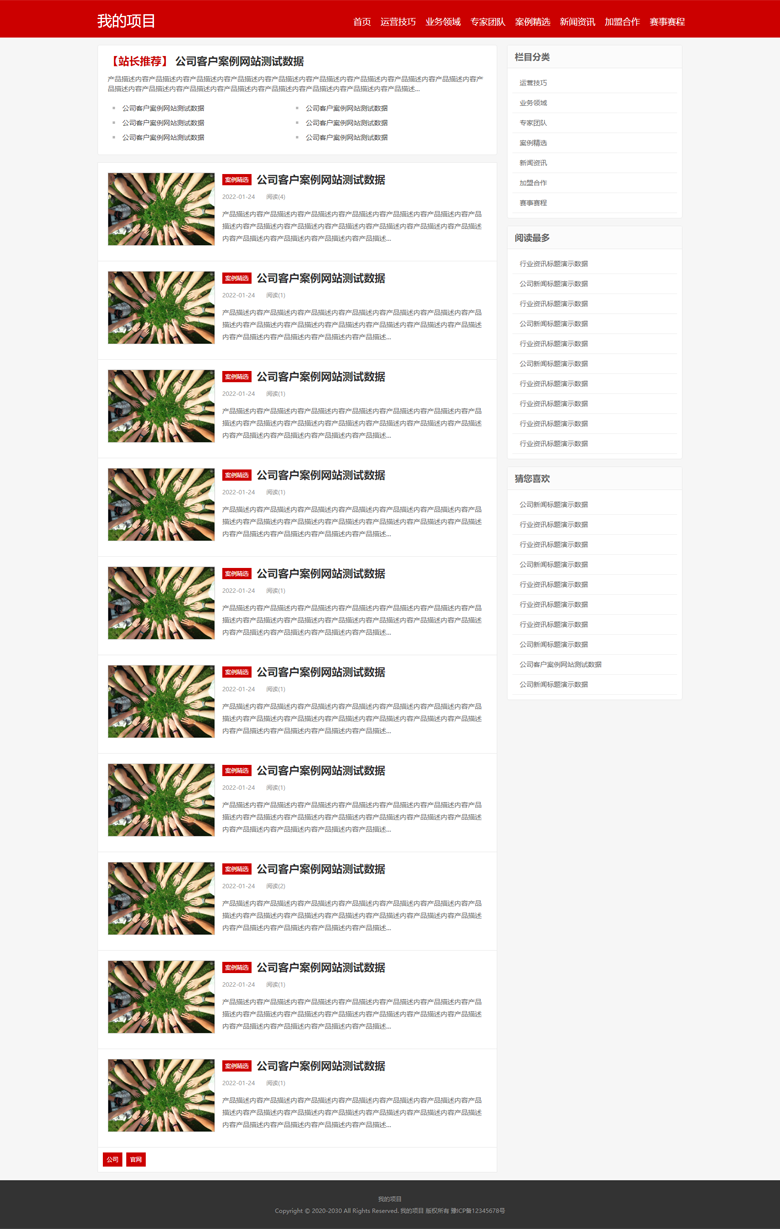 红色自适应体育赛事新闻资讯博客培训类行业迅睿CMS主题模版下载页面布局简洁大气,重点内容突出,适用于各行业新闻资讯类网站。XunRuiCMS所用应用TAG关键词库 / tag 温馨提示:demo文件夹为测试数据附带图片,请搭建后及时删除。勿用于商业用途。