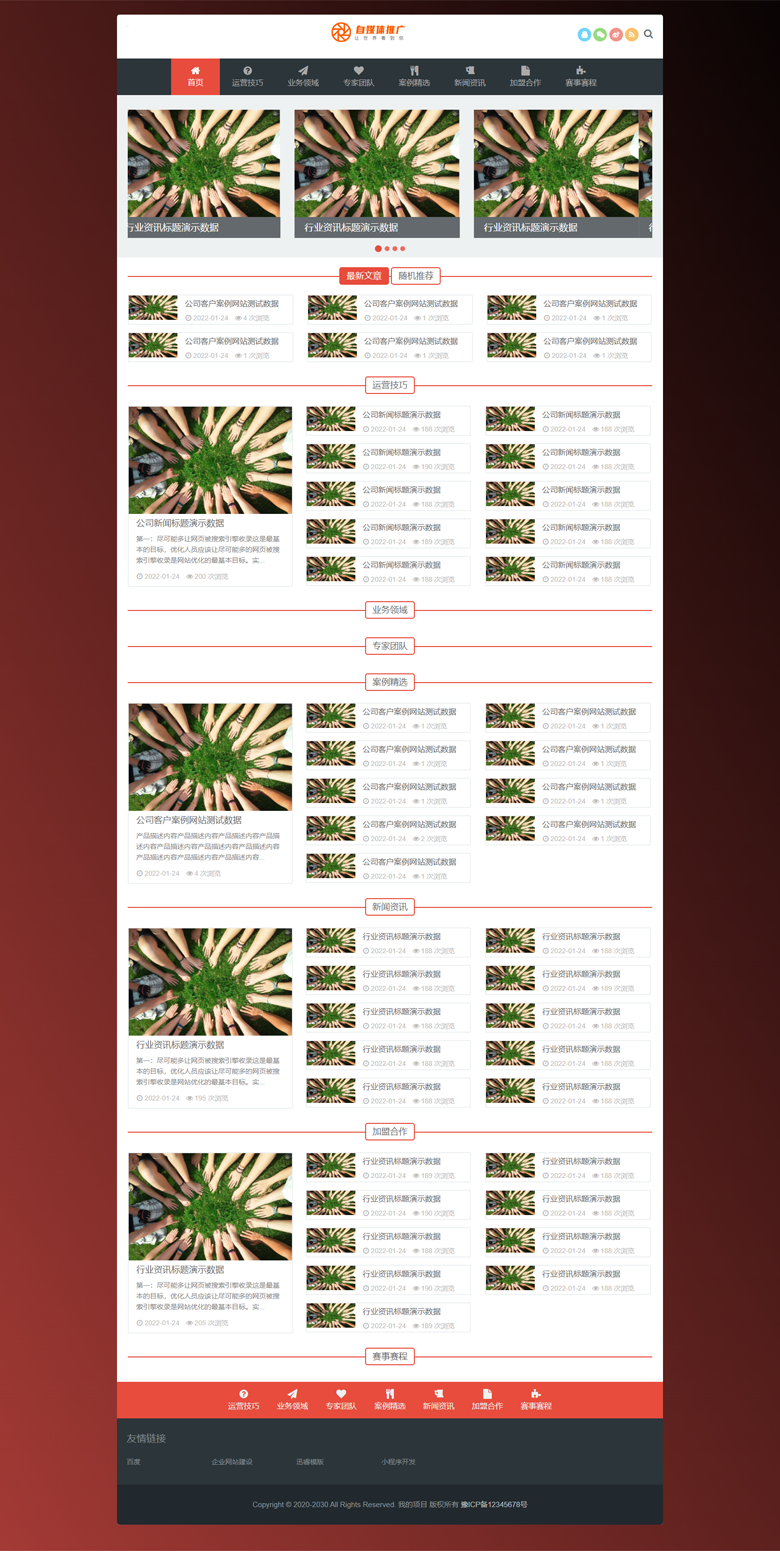 红色自适应新闻教程百科知识类网站模版主题自适应布局。首页中间部分自动调用栏目。页面配置有tag标签模块。XunRuiCMS所用应用TAG关键词库 / tag 温馨提示:demo文件夹为测试数据附带图片,请搭建后及时删除。勿用于商业用途。