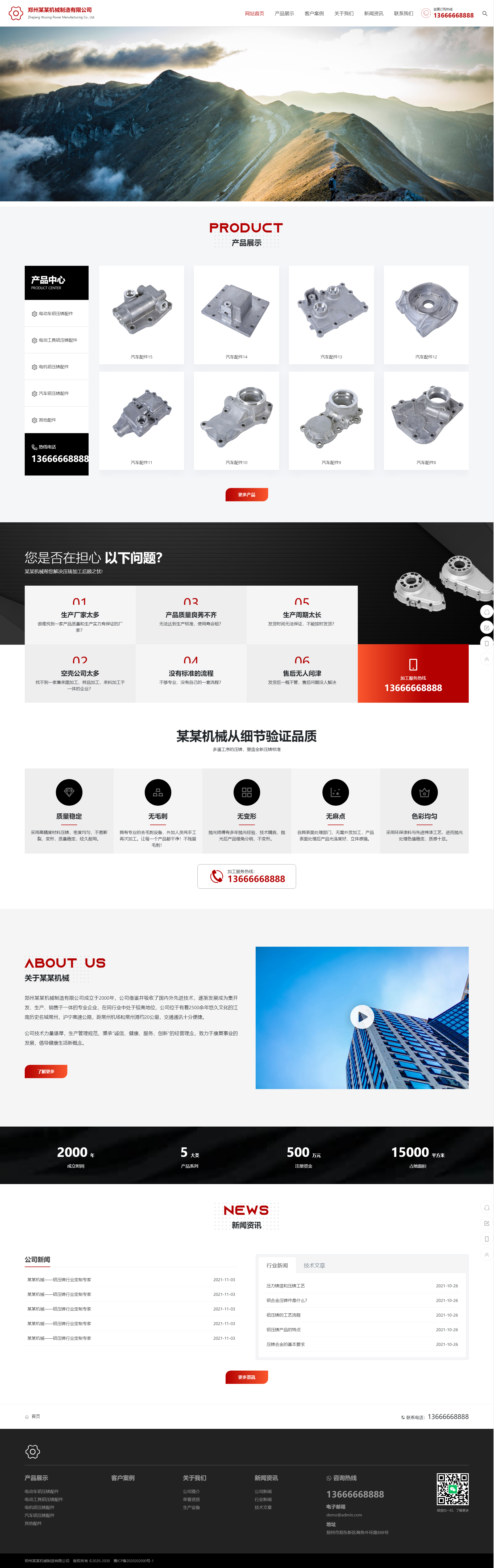 (自适应手机端)红色简洁大气自适应营销型压铸加工机械厂网站模板源码下载