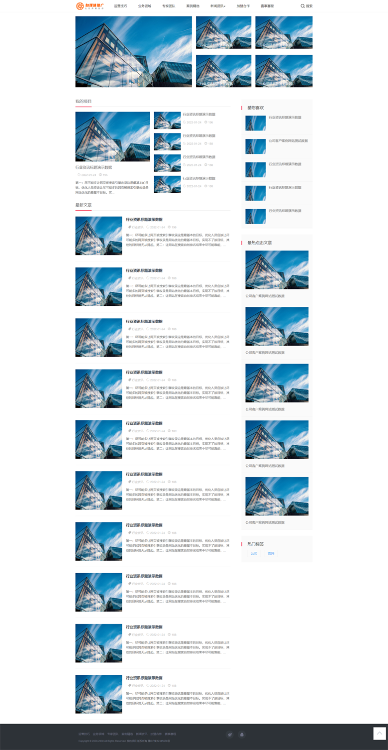 灰白色简洁大气宽屏站群资讯模版科技培训迅睿模版主题下载页面简洁大气,适合科技类、培训类等行业网站使用。XunRuiCMS所用应用TAG关键词库 / tag 温馨提示:demo文件夹为测试数据附带图片,请搭建后及时删除。勿用于商业用途。