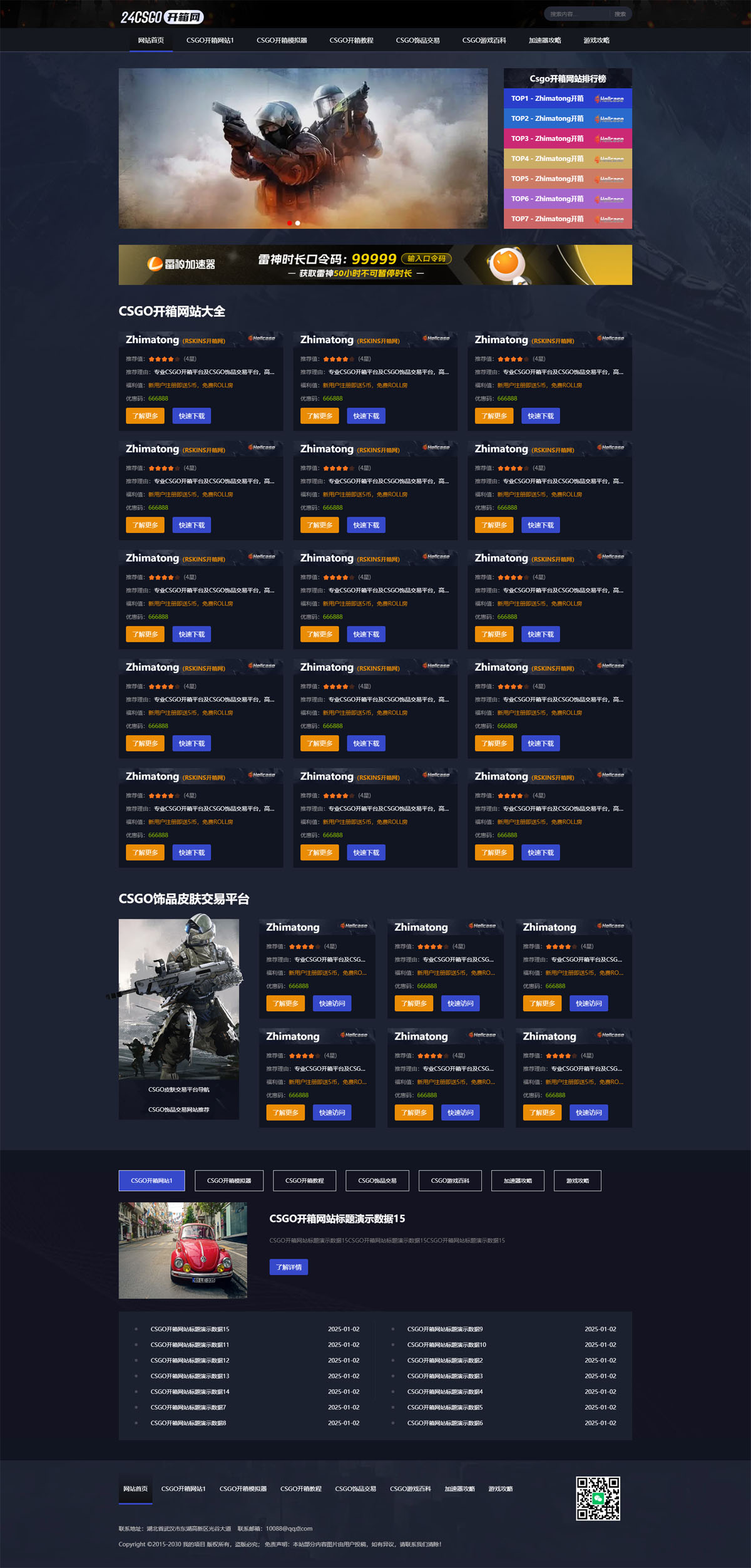 模板适用于CSGO/游戏/开箱/新闻博客网站等企业,当然其他行业也可以做,只需要把文字图片换成其他行业的即可;