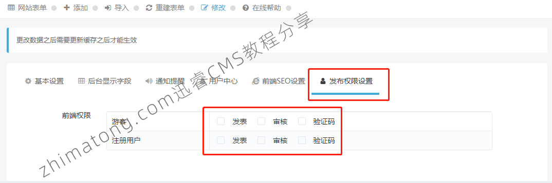 迅睿CMS表单提示"需要在表单插件后台,开启发布权限"的解决方法