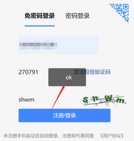 迅睿CMS支持手机号码短信验证后如果未创建账户自动创建账户,默认的提示语是【ok】。如下图: