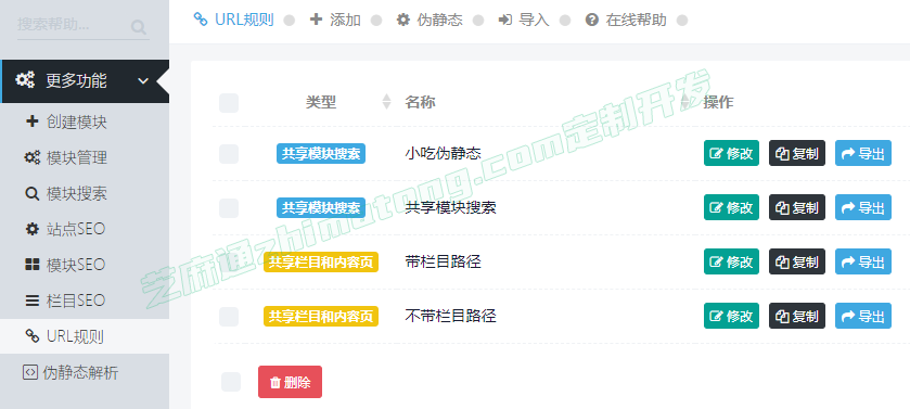 三、设置后在伪静态解析中,点击生成伪静态规则。